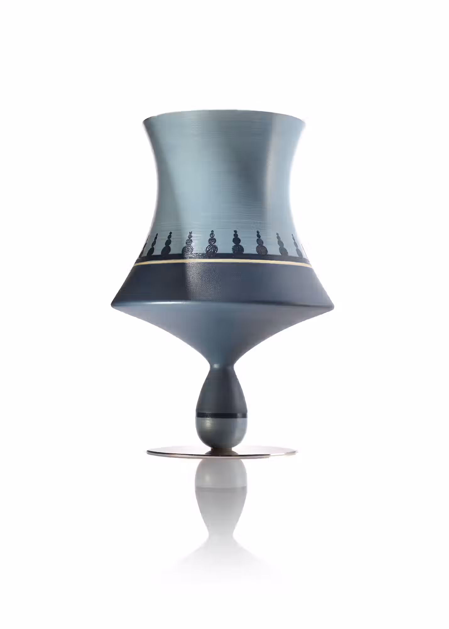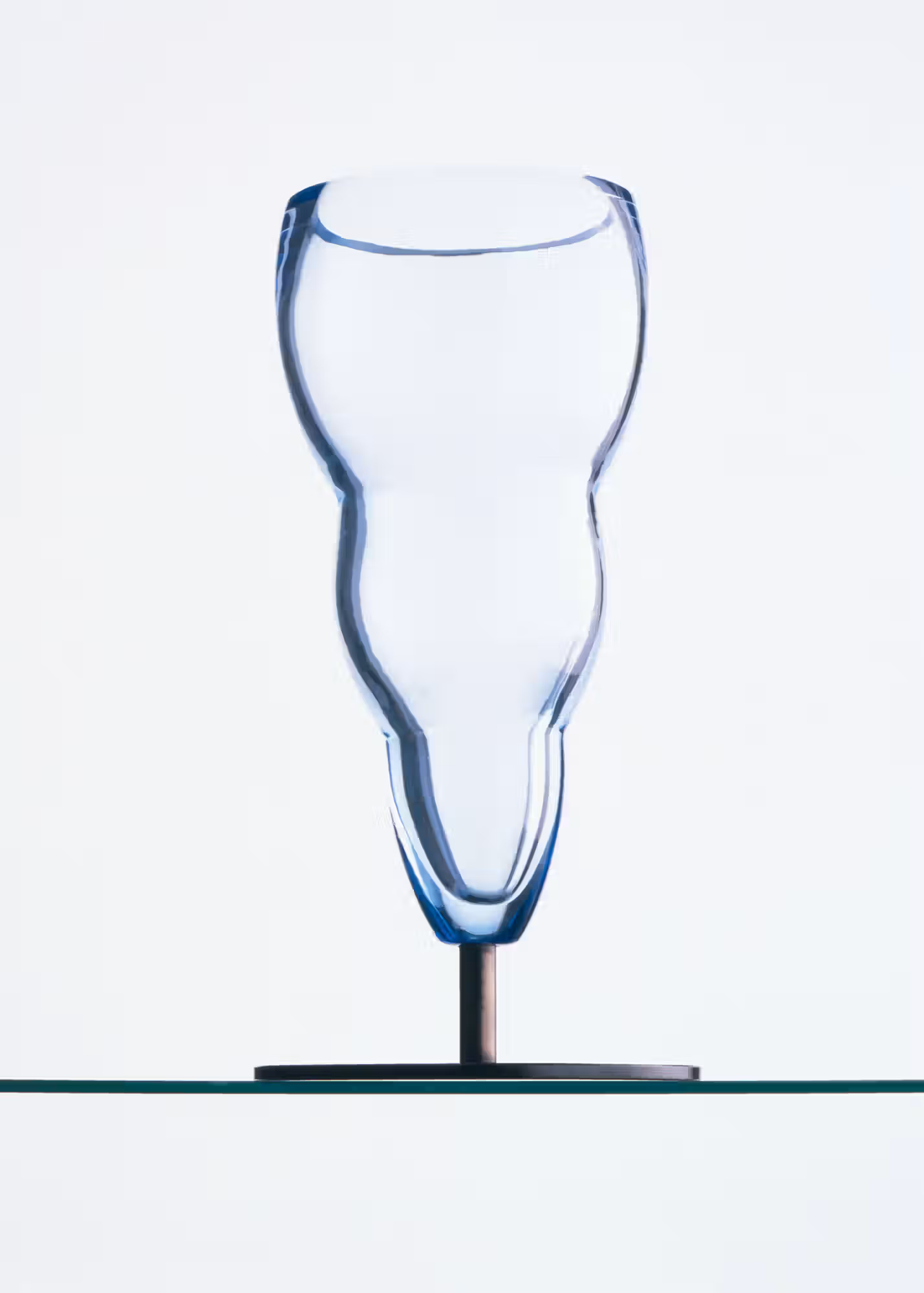 Non è affatto ovvio che in un vaso di vetro è il vuoto che fa la forma ed è il colore che fa la trasparenza. Li ho disegnati con il pennino sottilissimo recuperando delle penne che usavo all’epoca della scuola di architettura di Firenze e costruendo il disegno con innumerevoli tratti ottenendo gli effetti delle opacità e di riflessi con estrema, voluta e goduta pazienza. Questa soddisfazione è visibile probabilmente dal ripetersi insistente di motivi che si generano uno dall’altro rendendo l’effetto via via più completo. Sono alla fine soddisfatto di questi vasi così semplici e ricchi solamente della loro forma e di un colore raro che oramai pochi a Murano sanno ancora realizzare. Costruttivamente ho realizzato dodici stampi in legno e ho composto per il momento solo dieci modelli finali: ma molte combinazioni sono ancora aperte e l’esplorazione delle possibilità mi rende tuttora curioso.